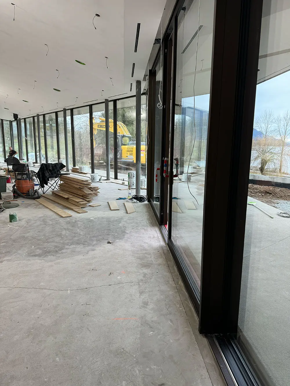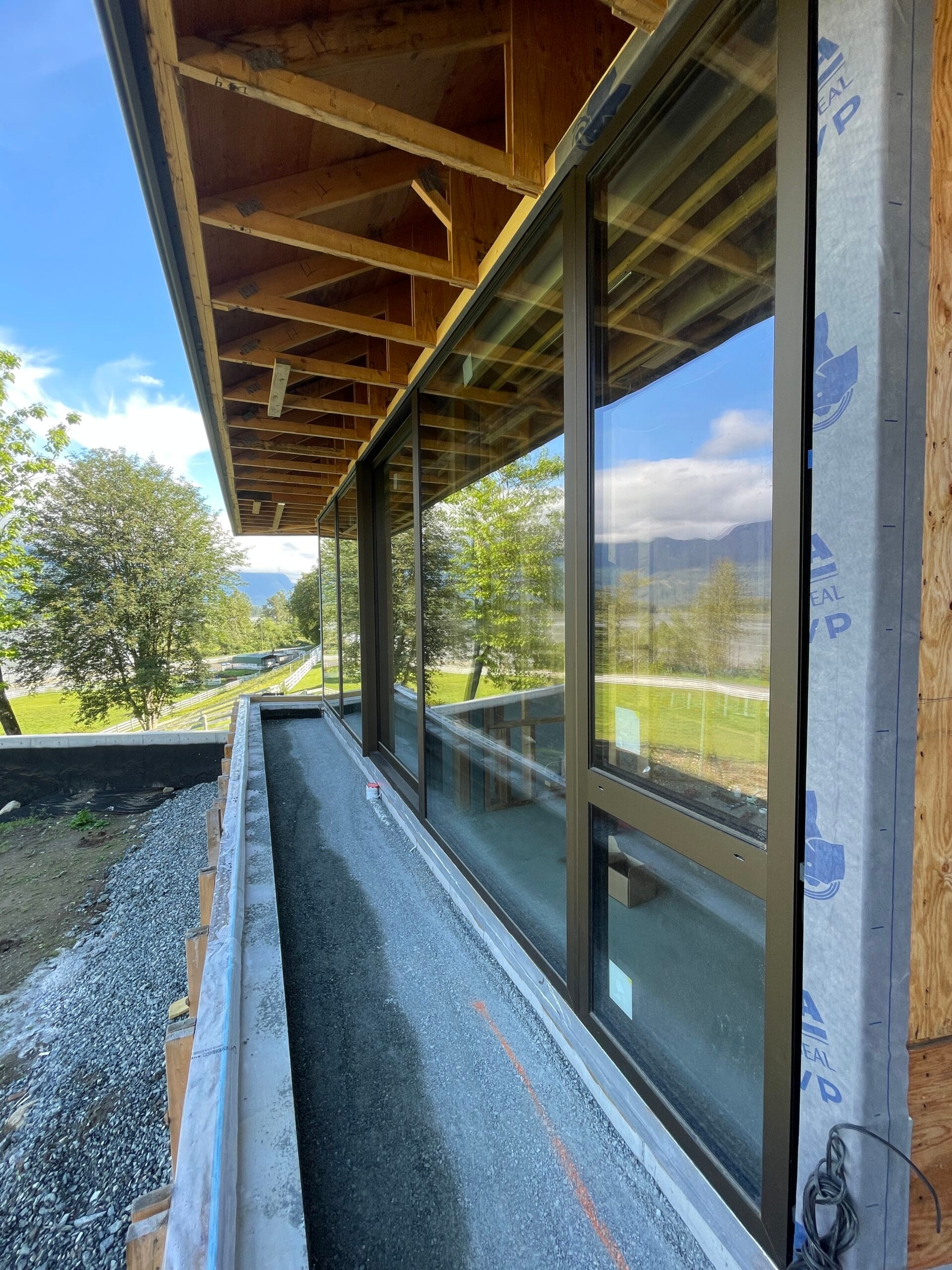 This completed riverside residence in British Columbia showcases Summit Glazing’s expertise in high-performance aluminum glazing for modern homes in the Vancouver area. Our team supplied and installed a continuous Schüco AWS 75.SI window wall system that frames wide views of the river while delivering strong thermal performance and acoustic comfort for year-round living. At the main entry, a Schüco FWS 50 CW glazing system creates a bright, transparent foyer that brings daylight deep into the interior and sets the tone for the rest of the house. Large format Schüco ASE 80 DesignLine lift and slide doors open the main living spaces to terraces and outdoor areas, creating an easy connection between the interior and the landscape. Throughout the home, a coordinated package of Schüco swing doors provides secure, durable access with slim sightlines and a consistent architectural language.