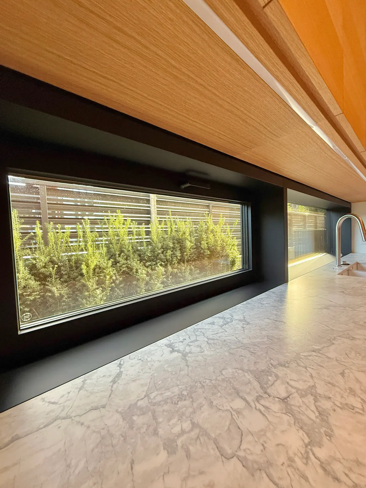 Summit Glazing supplied and installed a custom aluminum glazing package that combines large picture windows, operable units for natural ventilation, and generous openings to outdoor living spaces. Floor-to-ceiling glazing in the main living areas captures daylight and offers views into the landscape, while more private rooms utilize a mix of smaller apertures and carefully placed windows to strike a balance between privacy, light, and thermal comfort. High-performance insulated glass and thermally broken frames help manage heat loss and solar gain throughout the year, supporting comfortable interior conditions without compromising the refined, minimalist detailing of the façade.