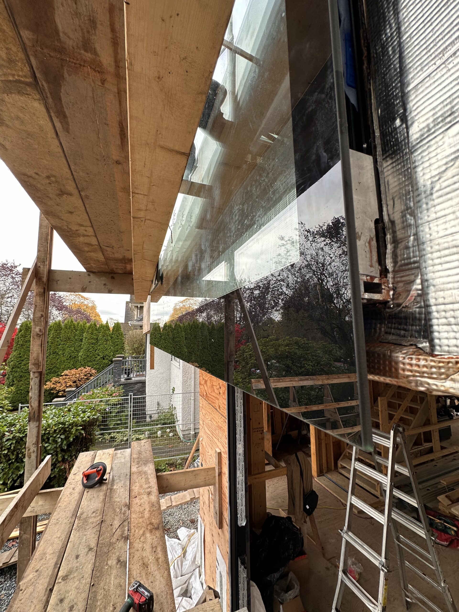 At the heart of the project is a carefully composed phantom curtain wall built using Schüco FWS 50.SI. This assembly appears visually seamless, yet required exacting planning to resolve profile mismatches with adjacent FWS 60 CV ribbon windows. Custom framing details and strategic alignment brought clarity to the façade, enabling both fixed and operable glazing to function seamlessly together without compromise.